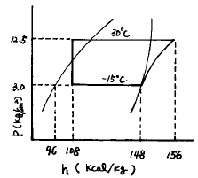 [냉동기계] 다음은 R-22 표준냉동사이클의 P-h선도이다. 압축일량은?