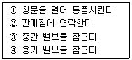 다음 가스시설 중에서 가스가 누설되고 있을 때 가장 적절한 조치를 순서대로 나열한 것은?