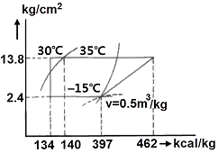하지만, 모리엘 선도에 따르면, 냉매 순환량 G는 126.2kg/h이고, 압축기 실제 소요동력 N은 17.0KW이다.