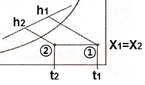 [공기조화] 다음 그림에서 ①의 상태의 공기를 ②의 상태로 변화하였을 때 상태변화를 바르게 설명한 것은?