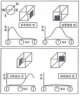 [공기조화] 다음 그림에서 설명하고 있는 냉방 부하의 변화요인은?