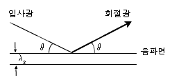 [레이저 및 광전자] 음파를 이용한 광변조는 음파가 만드는 회절격자에 의한 빛의 회절현상을 이용한 것이다. 그림과 같이 음파면에 대해 θ의 각도로 입사하여 다시 같은 각도 θ로 1차 회절 될 때 회절광의 세기가 가장 크게 되는 조건은? (단, λ와 λs는 물질 내의 빛과 음파의 파장이고, n은 물질내의 빛의 굴절률이다.)