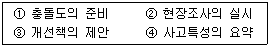 [교통안전] 미국 ITE(교통공학회)의 교통공학 조사편람에서 제시한 개선 대안 제안을 위한 위험지점 분석의 4단계에 대한 바른 순서는?