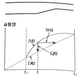 - ③ t시간에 도착하는 차량은 W(t) 이후에 출발한다.