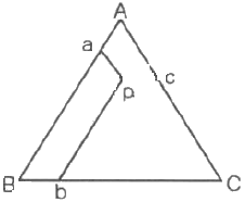 Roozeboom의 3성분계농도 표시법에서 [그림]과 같은 p 조성 합금 중의 B의 조성은 어느 선분의 길이로 표시되는가?