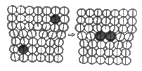 전위와 용질원자사이의 상호작용으로 치환형용질 원자가 이동하여 나타난 그림에 대한 설명으로 옳은 것은?