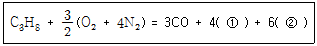 다음은 변성로에서 프로판가스에 적정 공기를 혼합한 Rx gas를 제조할 때의 반응식이다. ( )안에 생성가스로 옳은 것은?