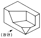보기와 같은 입체도를 화살표 방향에서 본 투상도로 가장 적합한 것은?