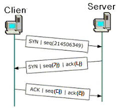 다음은 TCP 연결에 있어서 세 방향 핸드 쉐이킹을 나타낸 그림이다. '가~라'에 들어갈 번호로 옳지 않은 것은? (단, 서버로부터의 초기 시퀀스번호는 '323998684' 이다.)