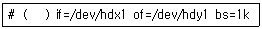 다음은 /dev/hdx1 파티션의 내용을 크기가 같은 파티션인 /dev/hdy1에 모두 복사하기 위한 명령이다. ( ) 안에 알맞은 명령어는?