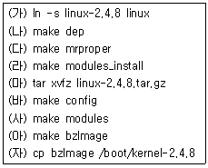다음은 커널 컴파일 과정을 순서 없이 나열한 것이다. 순서대로 바르게 나열된 것은?