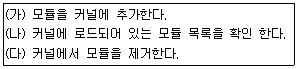 다음에서 설명하고 있는 커널 모듈관련 명령이 알맞게 짝지어진 것은?