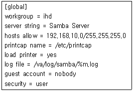 다음 삼바(Samba) 설정 파일의 내용에 대한 설명으로 틀린 것은?
