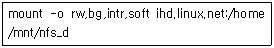 다음은 NFS 클라이언트에서 NFS 서버를 마운트하기 위해 사용한 명령이다. 이와 동일한 내용을 /etc/fstab 파일에 구현한 것으로 알맞은 것은?