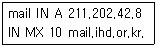 다음은 DNS 설정 파일 중 메일과 관련한 설정의 일부분이다. 이에 대한 설명으로 가장 적절한 것은?