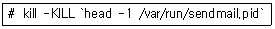 /var/run/sendmail.pid 파일에 Sendmail 서버 프로세스의 PID 값이 저장되어 있다고 가정했을 때, 다음 명령에 대해 가장 적절하게 설명한 것은?