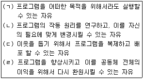 자유 소프트웨어(Free Software)를 충족시키는 조건을 모두 고른 것으로 알맞은 것은?