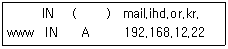 다음은 설정된 DNS 서버 zone 파일의 일부이다. 다음 ( 괄호 )안에 들어갈 내용으로 알맞은 것은?