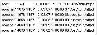 리눅스 환경에서 httpd 프로세스의 리스트를 검색한 결과 다음과 같이 11671 프로세스를 부모로 가지는 자식 프로세스가 다수 검출되었다. 이를 설명하는 용어로 알맞은 것은?