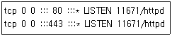 리눅스 환경에서 httpd 프로세스가 LISTENING 중인 TCP 포트번호를 확인하고자 할 때 사용할 수 있는 명령어로 알맞은 것은? (명령어의 결과는 다음과 같다.)