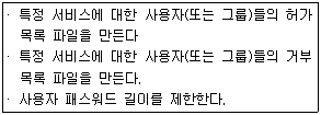 다음 중 특정 서비스에 대해서 IP 주소 기반으로 접근을 차단하는 역할을 수행하는 것으로 틀린 것은?