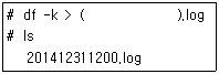 다음 명령어는 현재 파일시스템 사용량을 현재 날짜와 시간의 이름으로 저장하는 내용이다. 빈칸에 들어갈 내용으로 알맞은 것은?(현재시간은 2014년 12월 31일 12시 정각이다)