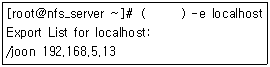 다음은 NFS 서버에서 공유가 설정된 디렉토리 및 클라이언트를 확인하는 명령이다. ( 괄호 ) 에 들어갈 내용으로 알맞은 것은?