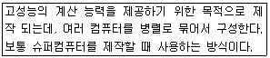 이 그림에서는 고성능 컴퓨팅(HPC) 클러스터를 보여주고 있습니다. HPC는 대규모 데이터 처리나 과학 연구 등에 사용되는 컴퓨팅 기술로, 여러 대의 컴퓨터를 연결하여 하나의 시스템으로 구성합니다. 이를 통해 높은 성능과 처리 속도를 얻을 수 있습니다. 따라서 이 그림에서는 HPC라는 단어가 정답입니다.