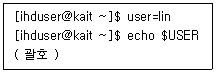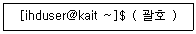 다음은 ihduser 사용자가 로그인 후에 사용 중인 셸을 확인하는 과정이다. ( 괄호 ) 안에 들어갈 내용으로 알맞은 것은?
