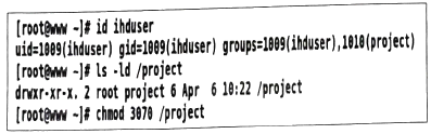 다음은 /project 디텍터리를 포함해서 하위 디렉터리 및 파일의 그룹 소유권을 project로 변경하는 과정이다. ( 괄호 ) 안에 들어갈 내용으로 알맞은 것은?
