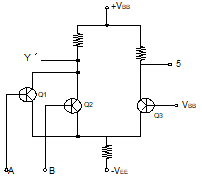 그림과 같은 ECL 회로의 논리출력은? (단, Y, Y' 는 출력단자)