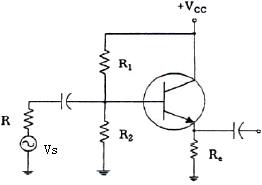 그림과 같은 에미터폴로우 회로에서 h-파라메타가 hie=2.1[kΩ], hfe=100이고, R1=10[kΩ], R2=10[kΩ], Re=4[kΩ]일 때, 입력저항은 약 얼마인가?