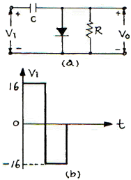 [디지털 전자회로] 그림 (a)의 회로망에 그림 (b)의 입력파를 인가시 출력파형으로 옳은 것은?(단, 다이오드는 이상적인 특성을 갖는다.)