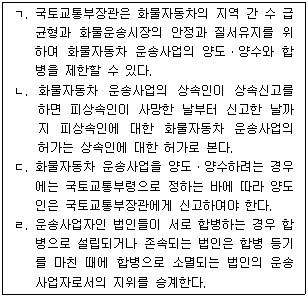 - 화물자동차 운송사업의 양도ㆍ양수, 합병 및 상속은 법적으로 인정되는 절차를 거쳐야 한다. (ㄱ)