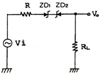 다음과 같은 다이오드 회로에서 전달특성으로 적합한 것은? (단, VZ=ZD1과 DZ2의 항복 전압이다.)