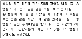 다음은 태양을 중심으로 회전하는 행성들의 운동을 관측한 결과로 얻어낸 법칙이다. 다음에 해당하는 법칙은 무엇인가?