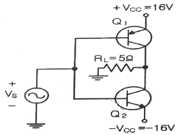 다음 B급 SEPP(Single-Ended Push-Pull) 증폭기에서 트랜지스터 1개당 최대 전력 손실은 약 몇 [W]인가?