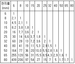 [임의구분] 25A용 2개, 20A용 3개, 15A용 2개의 급수전을 사용할 때 급수 주관의 호칭규격을 급수관의 균등표를 이용하여 계산하시오. (단, 동시 사용률은 무시한다.)