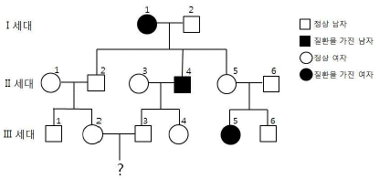 [자연과학개론] 다음은 어떤 유전질환을 가진 집안의 가계도이다.