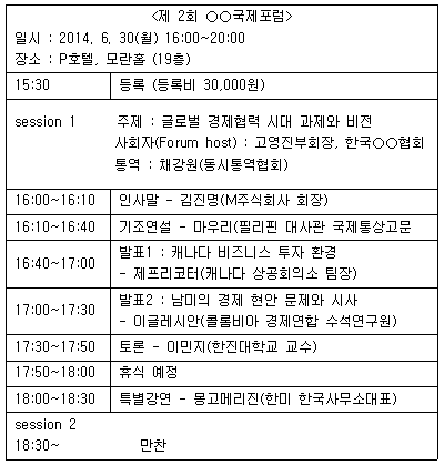 - ① 포럼의 홍보를 위해 주요내용 등을 담은 보도자료는 포럼 일정이 끝난 후 작성해서 배부한다.