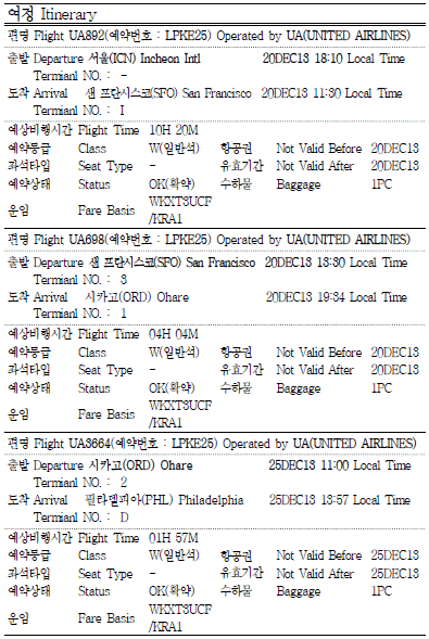 [비서실무] 아래의 항공일정표를 보고 비서의 업무처리가 가장 적절한 것은?