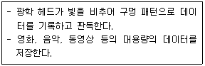다음 보기에서 설명과 관련이 없는 보조기억장치는?