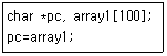 C언어의 포인터 조작 연산에서 변수 pc에 대입되는 것과 같은 결과를 갖는 것은?