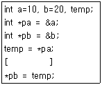 C언어에서 포인터를 사용하여 두 변수 a, b의 값을 교체하는 경우 빈칸에 알맞은 코드는?