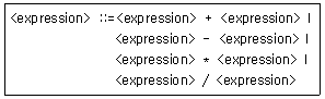 다음 수식(expression)을 EBNF로 맞게 표현한 것은?