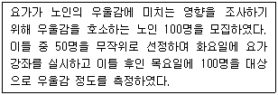 - ③ 요가강좌에 참여한 50명과 참여하지 않은 50명의 동질성을 확보하는 것이 중요하다.
