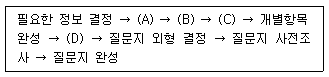 다음은 질문지 작성의 일반적인 절차를 나열한 이다. ( ) 안에 들어갈 가장 알맞은 것은?