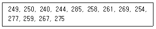 다음은 어떤 대학의 신입생 중 13명을 랜덤하게 추출하여 대학수학능력시험 성적을 조사한 결과이다. 대학수학능력시험 평균이 257보다 큰가를 검정하기위해 비모수 검정법을 사용하기로 하였다. 부호순위 검정통계량 값은?