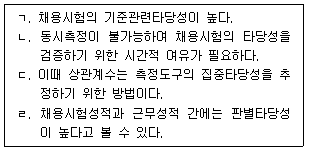공무원 채용시험의 타당성을 알아보기 위하여 채용시험성적과 채용 후 근무성적을 비교한 결과 양자 간의 상관계수가 높게 나타났다. 이에 대한 설명이 옳은 것은?