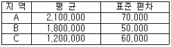 [사회통계] Awl역, B지역, C지역의 가구당 소독조사를 하여 분석한 결과 다음과 같은 자료를 얻었다. 위 3개 지역의 변이계수를 비교한 결과롤 옳은 것은?